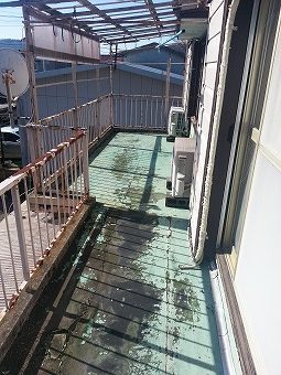 岸和田市の雨漏り修理のご相談で現地調査にお伺いしました。長い間雨漏りしていたそうで、最近の大雨で雨漏りがひどくなり、困っておられました。まずは、雨漏りしている箇所の確認です。 ...続きを読む2025/12/20 岸和田市上松町の割れたカーポートの波板とベランダの波板の現地調査