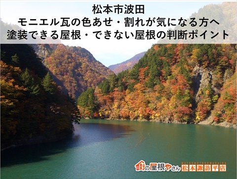 こんにちは。街の屋根やさん新居浜・四国中央店です。引き続き四国中央市でカレッセ(横葺き金属屋根)に葺き替えの事例のご紹介です。前回、大屋根の下に潜り込んでいる屋根にルーフィングを張るところまでご紹介しました。その部分に横葺き板金を施工していく工程をご紹介します。この現場のここまでの工事の様子はこちらのブログか ...続きを読む2025/11/19 松本市波田|モニエル瓦の色あせ・割れが気になる方へ塗装できる屋根・できない屋根の判断ポイント