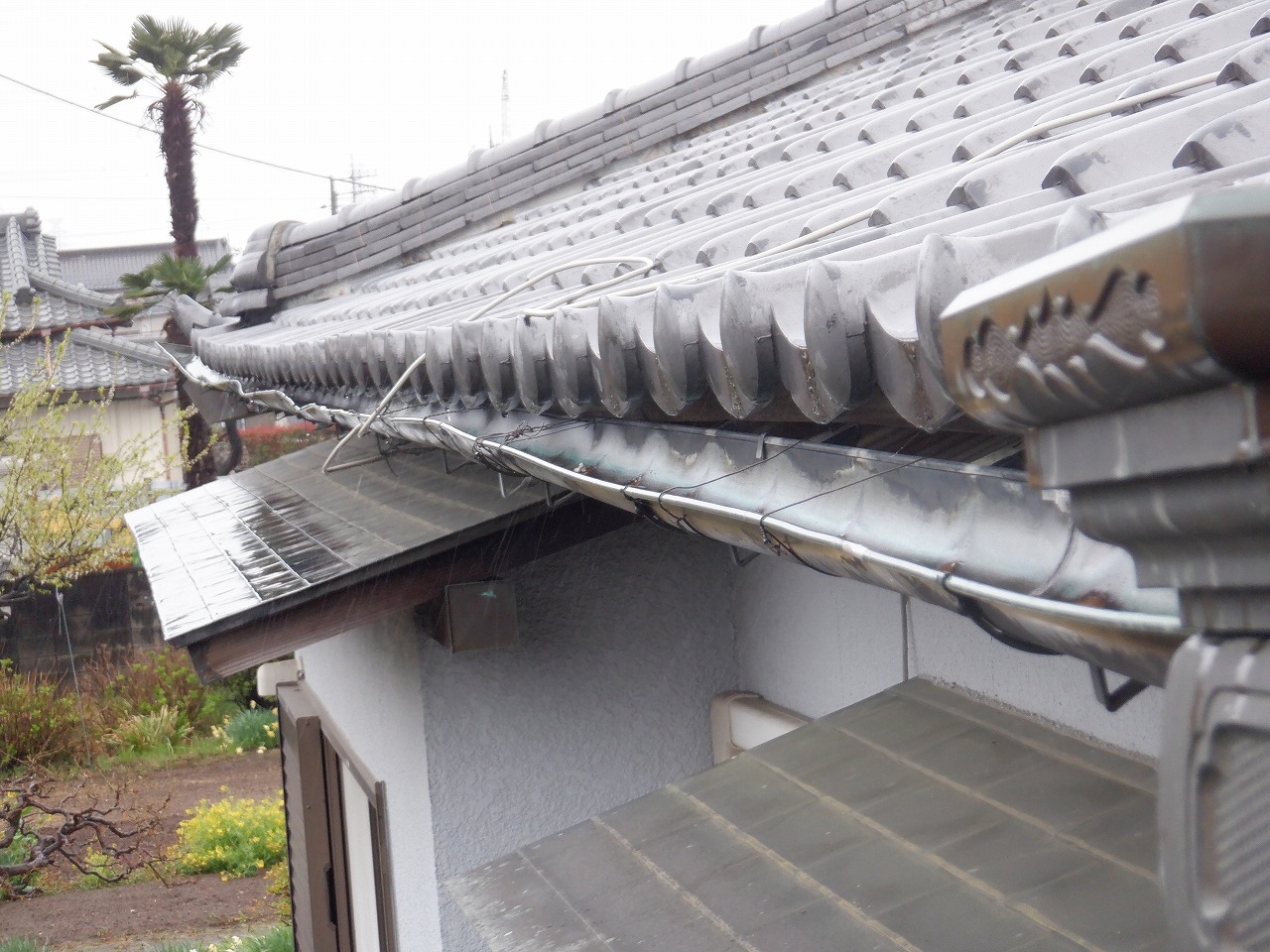 現在この下の部屋で雨漏りが発生しています。見た目瓦割れを起こしている様子などなかったですが、棟瓦のてっぺんに素丸瓦、その下に薄いのし瓦と言われる瓦が2段積んでいました。そののし瓦が本来なら1番下の1段目から少し内側に入ったところに2段目ののし瓦があります。写真で分かるよう ...続きを読む2023/01/27 菊池郡菊陽町で外壁の水切り板金に隙間があり2階建ての1階が雨漏り!シーリングで隙間を埋めるように提案しました