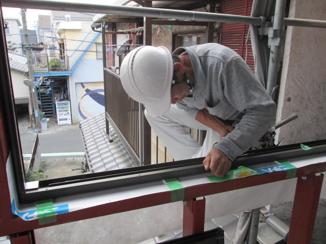 陸屋根の内側の立ち上がり部分。トタンが錆びて穴が開き、水漏れの原因になっています。 劣化している部分を剥して修理を行います。 ...続きを読む2024/03/24 静岡市清水区相生町、鉄骨住宅3階建ての窓の取り付けと防水テープ巻きの作業を行っております。
