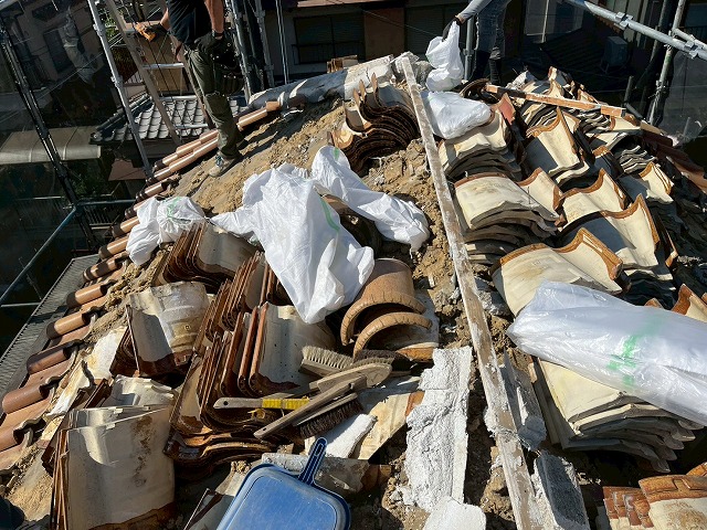 2025/12/8 瓦と葺き土を撤去!下地の状態を徹底チェック【城陽市 葺き替え工事】