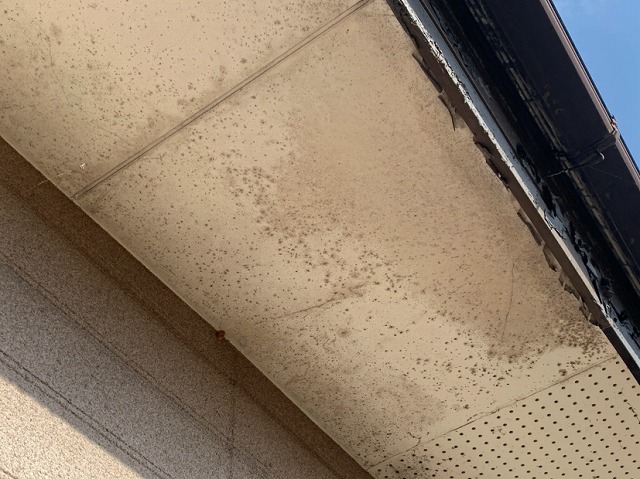 本日は、岸和田市上松町O様邸の外壁塗装工事2日目です。昨日に引き続き、外壁ALC版の防水処理をしていきます。 外壁ALC版の継ぎ目に「防水シーリング」を増し打ちしていきま ...続きを読む2025/12/5 西宮市|軒天の剥がれ・シミの原因とは?放置の危険性と修理方法を専門店が解説