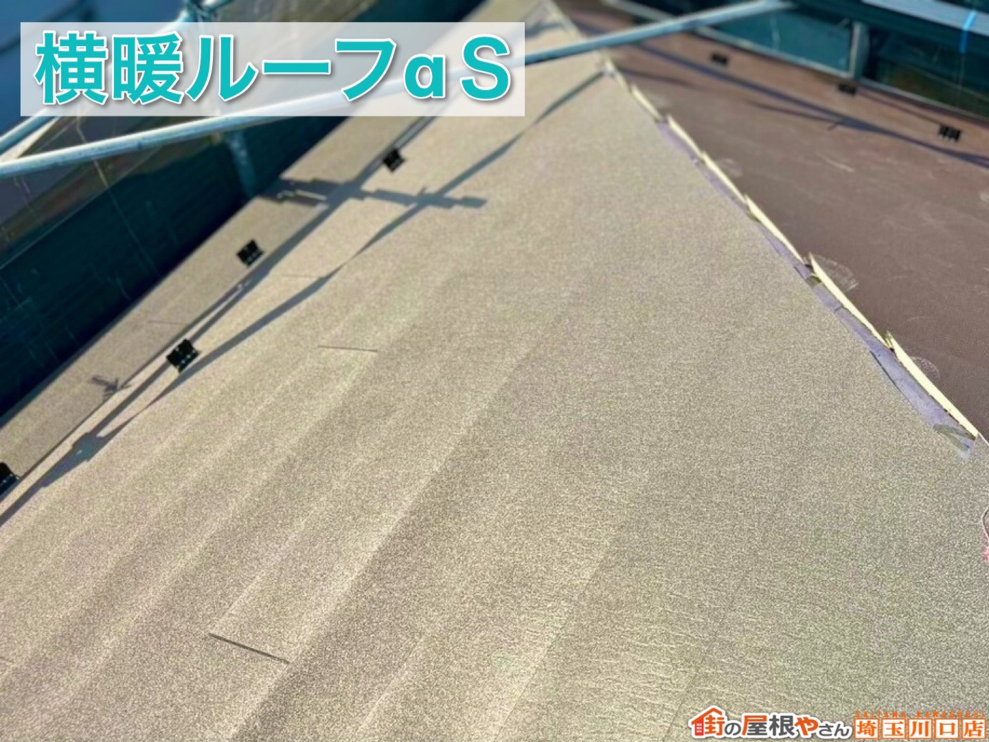 岸和田市の台風被害に遭った青い瓦屋根の修理を行いました。N様邸は台風で屋根の瓦が大量に飛散してしまい、在庫で保管されていた瓦を並べてその上に白いシートをかぶせて応急処置されていました。瓦を並べただけなので固定してほしい、とのご依頼です。 ...続きを読む2026/02/20 【後編】 横暖ルーフαSと換気棟で完成!上尾市屋根カバー工事の仕上がり