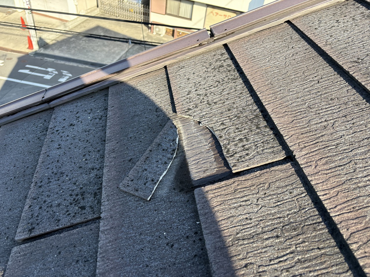 折半屋根は倉庫や工場だけでなく、木更津市の住宅や付帯建物でも多く採用されています。一方で、近年は【折半屋根の破損】に関するご相談が増えています。金属屋根だから安心と思われがちですが、実は経年劣化や自然環境の影響を大きく受ける屋根材です。 本記事では、木更津市で実際に確認された事例写真をもとに、折半屋根の破損症 ...続きを読む2026/01/7 杉並区上井草にてスレート屋根の雨漏りは縁切り不足が原因?排水不良による不具合を調査しました