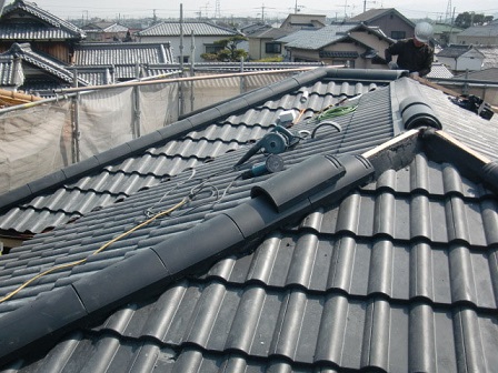 本日は岸和田市上松町の屋根の葺き替え工事2日目です。野地板、防水シート貼り、そしてスレート瓦の葺き替えに入ります。 昨日で既存の屋根瓦はすべて前日に撤去しました。まず最初 ...続きを読む2025/12/4 岸和田市土生町で屋根の洋瓦の葺き替えと棟瓦の設置