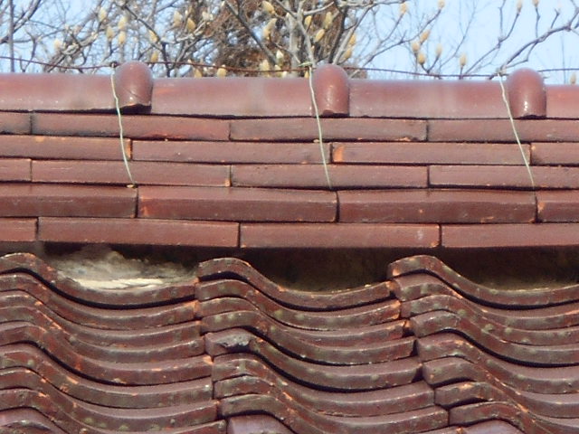 2022/03/25 岐阜市にて瓦屋根の現場調査に行くと棟の漆喰が剥がれていてメンテナンスが必要でした