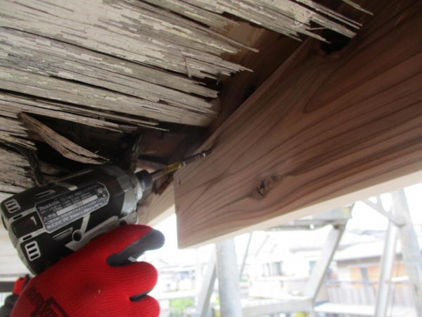 宇都宮市でガルバニュウム製波板と破風板、軒天を取り付けました。 2段目の破風板を取り付け中です。 既存の破風板と高さを合わせるために、間柱を重ねてビスで固定中です。 外側にビスが出ないように38ミリのビスで固定していきます。 ...続きを読む2021/05/25 橿原市で釉薬瓦を撤去したので屋根裏に異常がないか点検しました