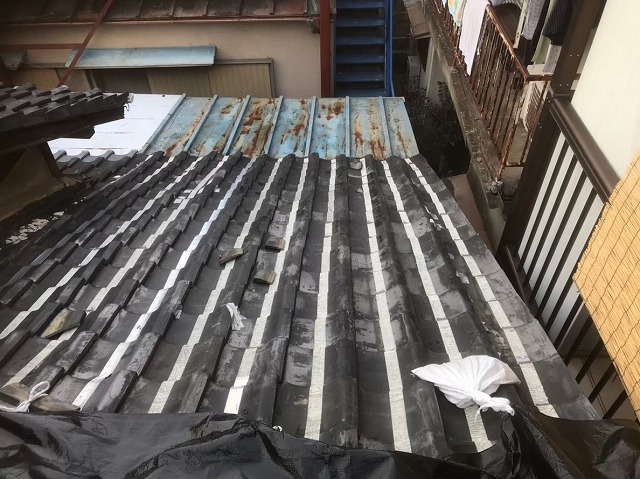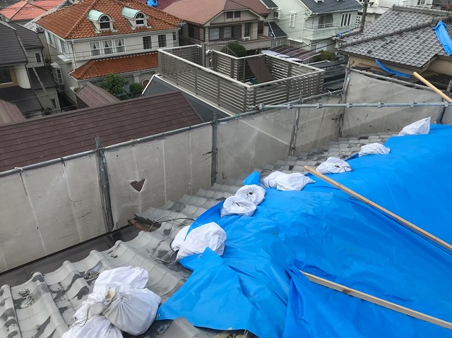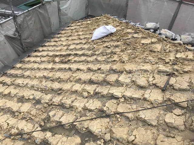 奈良市で屋根工事開始です。前回台風で被害に遭われた和瓦屋根を、無料点検に行って参りました。お客様のご希望は「耐震性に強い屋根にリフォーム工事」だったので、耐震性に強い屋根材の「スーパーガルテクト」で「葺き替え工事」を行います。今回は瓦の解体作業、葺き土と防水紙撤去、下地調整作業を行わせていただきます。工事の流 ...続きを読む2021/05/25 奈良市で約2年前の大きな台風で被害に遭われた和瓦屋根の無料点検