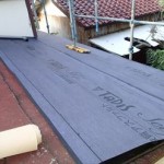市川市のお客様の屋根カバー工事も、スレート屋根への防水紙敷設が終了しましたので、いよいよ「横暖ルーフきわみ」を張り付けて行きます。屋根の勾配も5.5寸は有るかと思われます。足場は組んでいるとはいえ、十分に注意をしながらの作業です。 メインの屋根材を葺き終わり、最終工程の棟板金の取り付けです。下がり棟を行っています ...続きを読む2014/12/22 荒川区|雨漏りへ屋根カバー工事のご提案