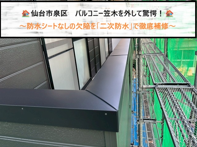 2026/04/19 仙台市泉区 バルコニー笠木を外して驚愕!防水シートなしの欠陥を「二次防水」で徹底補修