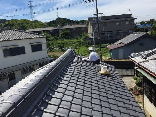 岸和田市にお住いのU様より「樋が詰まっているのか庇の上に雨水が落ちてくるんです。それと、夏場、2階の部屋が暑くてしょうがないので、そういうのを抑える塗料があるって聞いたんですが、塗装できますか?」というご相談をいただき工事に至ります。この記事では屋根塗装の様子を ...続きを読む2026/03/3 泉大津市で谷樋の際の漆喰を詰め直し割れた瓦を交換しました!