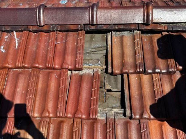 今回現地調査のご依頼をいただいたのは、ひたちなか市にある2階建てアパートです🏠外壁のひび割れや、給湯器・配管まわりのサビや腐食が目立ち始め、「雨水が入り込まないか心配」「このまま放置して建物は大丈夫なのか」と不安を感じられたことがきっかけでした。 特に設備周辺の金属部分から流れ出たサビ汁が外壁 ...続きを読む2026/03/3 忠岡町の瓦屋根の修理で割れた瓦を差替えラバーロックしました