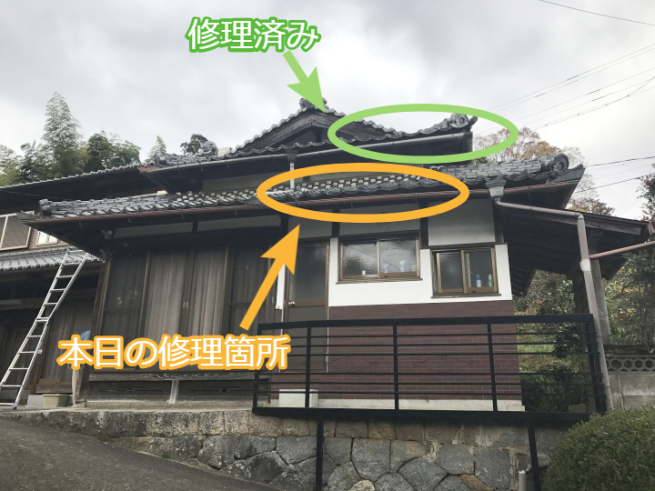 さて、4回に渡ってお伝えしてきた瓦屋根の雨漏り修理の様子ですが、いよいよ壁を修繕すれば完了です。 大屋根(おおやね(一番上の屋根))と下屋根(げやね(一段下の屋根))の両方を修理いたしましたが、どちらも雨漏りが東側(画面右側)の部位で起きていました。 北半球では、台 ...続きを読む2026/01/16 伊賀市で雨漏りのする瓦屋根を南蛮漆喰で葺き直し工事(下屋根編)