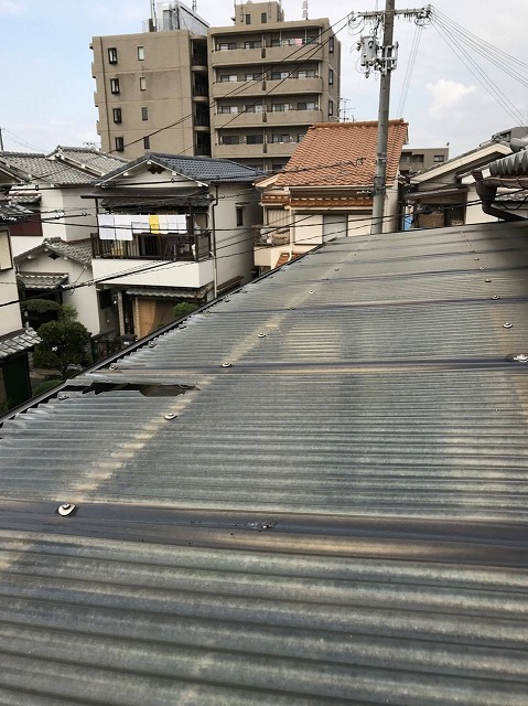 岸和田市にお住いのI様より管理されている物件の外部階段が傷んでいるので塗装してほしいというご相談をいただきましたので、現地調査にお伺いしました。ご相談をいただいた物件は熊取町にあり、鉄骨造の住宅です。現在お住いされている方はいませんが、今後のことを踏まえてメンテナ ...続きを読む2026/02/12 泉大津市の屋根葺き替えでスレートとパーティクルボードを撤去!