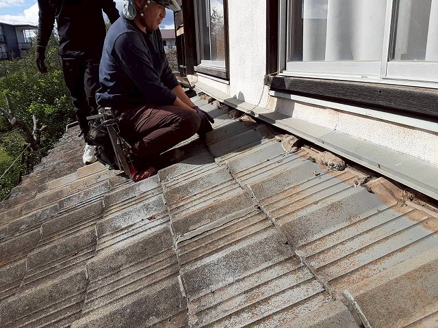 こんにちは、街の屋根やさん熊本店です。今回は、1990年代後半から2004年頃に建てられた住宅で特に多く見られる「ノンアスベスト屋根スレート」についてご紹介します。当時はアスベストの規制が強まった時期で、各メーカーから代替品としてノンアスベストのスレート屋根材が発売されました。しかし、その多くは耐久性に課題が ...続きを読む2026/02/6 貝塚市の屋根の調査で軒先瓦が落下して下屋の瓦が割れていました