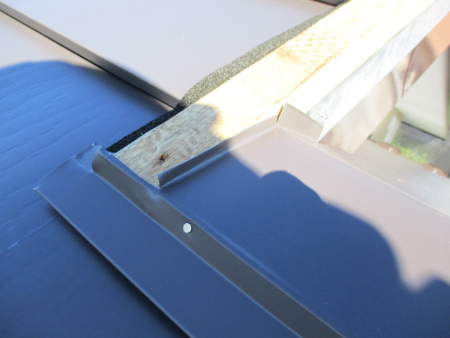 ケミカル面戸の取り付け中です。 10×15ミリの両面テープ付きケミカル面戸を、ルーフと抜き板の取り合いに貼っていきます。段差も隙間なく、貼り付けました。 ケミカル面戸の取り付けが終了しました。 ケミカル面とは、棟包み板金の水切 ...続きを読む2026/04/9 鹿沼市の屋根重ね葺き工事で横暖ルーフアルファーを取り付けました