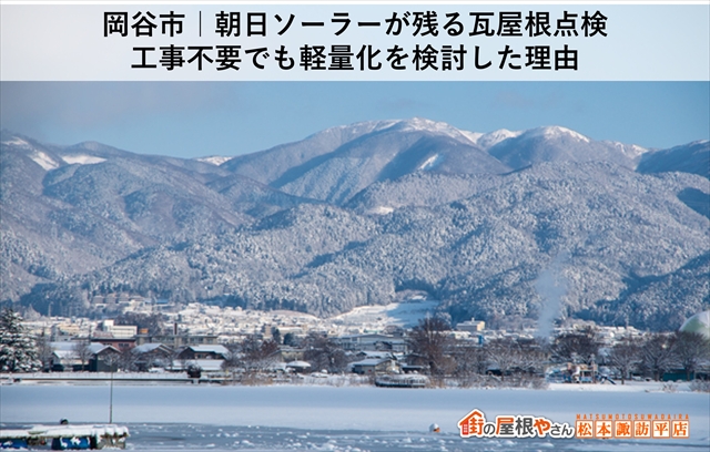 こんにちは。街の屋根やさん岸和田店です。和泉市にお住まいのあなた、外壁の色あせや汚れが気になっていませんか?今回、N様邸で外壁塗装と、屋根塗装、ソーラーパネル撤去のご相談をいただきました。現場にお伺いし、実際に調査してみると、外壁に、チョーキング現象やシーリング ...続きを読む2026/02/17 岡谷市|朝日ソーラーが残る瓦屋根点検 工事不要でも軽量化を検討した理由