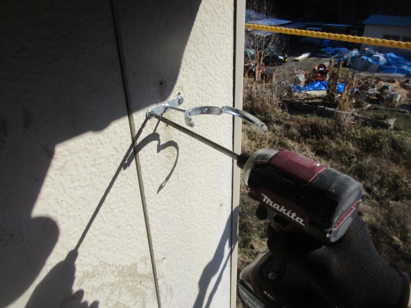 鹿沼市の工場で雨樋交換工事の2日目です。 縦樋金具の取り付け中です。下地を探してT足でんでん(縦樋金具の愛称)をビスで固定中です。 T足縦樋金具の取り付けが終了しました。 外壁内に雨水が入らないようにビスにシーリングをして防水 ...続きを読む2026/04/9 鹿沼市で1階に車庫のある住宅の外壁塗装をしました。