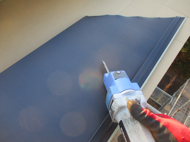 狭山市で屋根のカバー工事をお任せいただいた当社のお客様にて、点検訪問に伺いました。外壁によく見かける化粧幕板のあるお宅です。幕板の上部に施してあるシーリングが経年劣化で開いてしまい、外壁を伝う雨水を受けてしまう捲れ部を修繕しました! ...続きを読む2026/04/9 鹿沼市でコロニアル屋根から横暖ルーフSに重ね葺き工事をしました