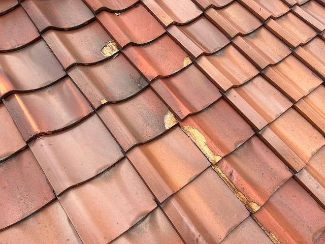 東大阪市にて瓦屋根の戸建て住宅で屋根点検、凍害による被害とズレが生じており葺き替え工事をご提案
