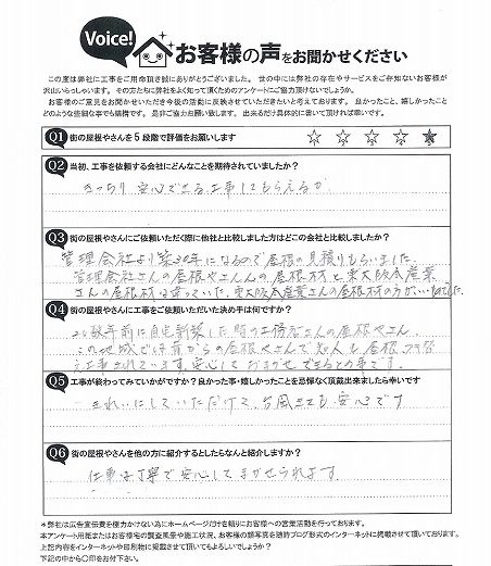 Q街の屋根やさんに工事をご依頼いただいた決め手は何ですか?