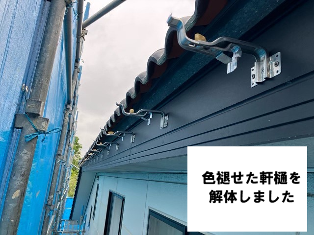 今回の現場では、劣化や色褪せが進んでいた雨樋を解体し、