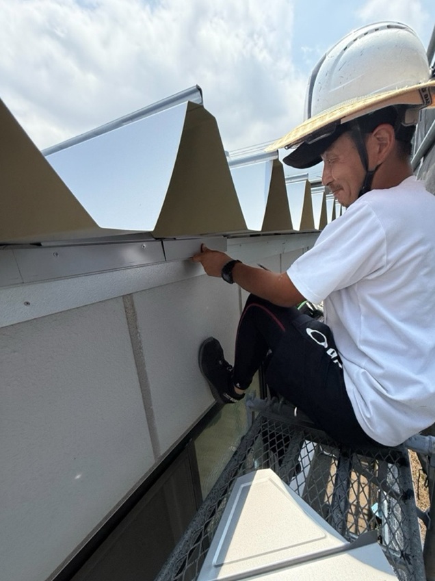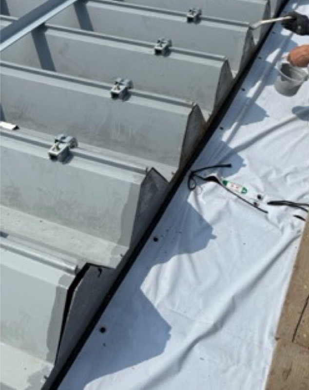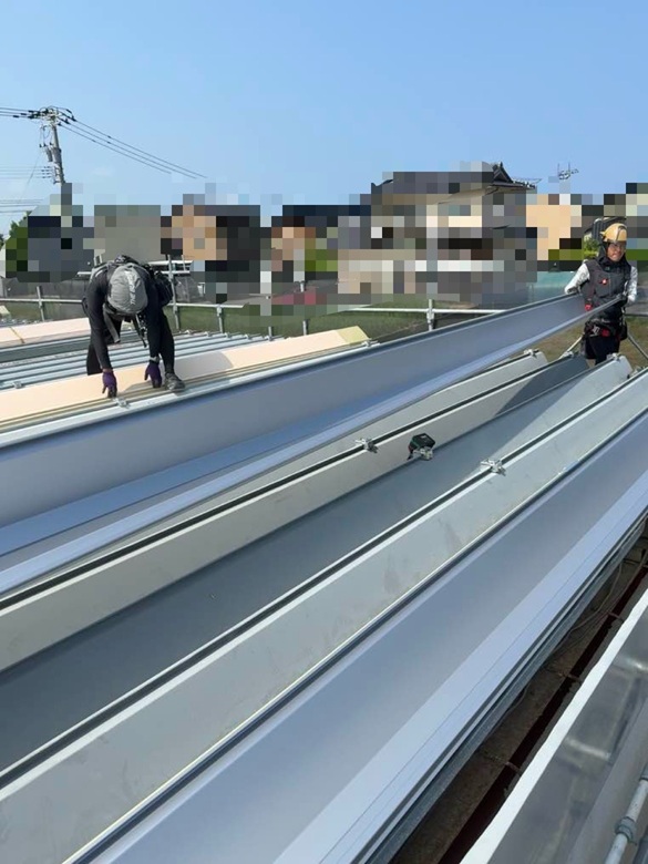今回は、新しい折板を重ねて固定・新しい面戸取り付けを行っている現場の様子をお伝えします!