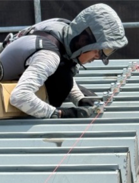 ホーム > 【金沢市の企業様】折板屋根に新しい折板を重ねて固定していきま…