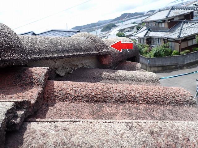 ホーム > 長崎市 屋根の棟瓦がズレて落下寸前!? 築40年の屋根の補修…