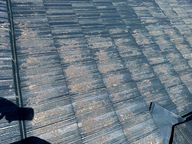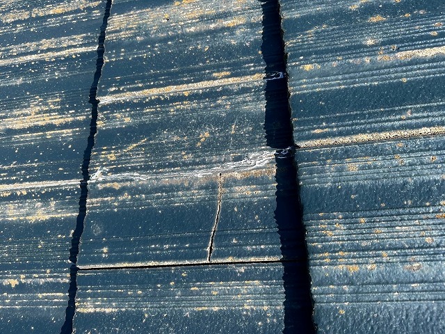 実際に現場に足を運ぶと、屋根全体にびっしりと苔が発生している様子が確認されました!特に日陰になりやすい箇所や雨水がたまりやすい部分に苔が集中しており、屋根の美観が損なわれているだけでなく、苔が厚く積もった箇所は滑りやすく、清掃やメンテナンスの際にも注意が必要ですよ🙋♂️