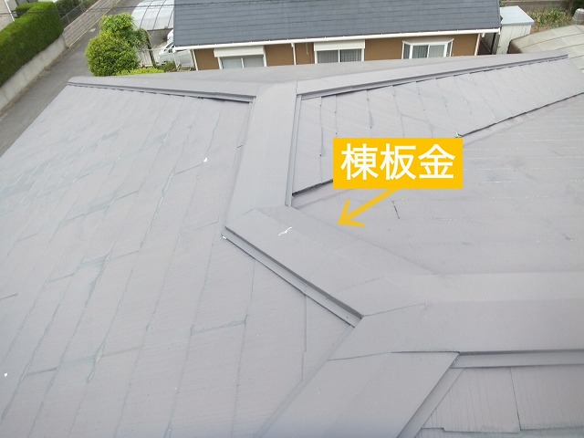 棟板金とは、屋根の頂上部にある、金属製の板です。