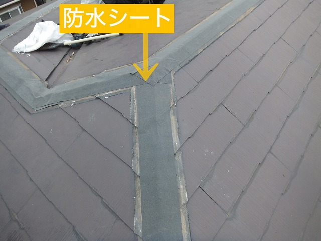 ここで重大なのが【防水シート】‼️これで先程の隙間をしっかりカバーして雨水が侵入するのを防ぐよ〜!スレート自体の内部にもしっかり張ってあって、雨水を防いでくれてるよ✋