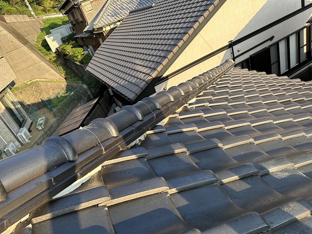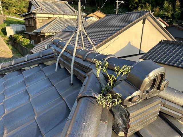 本日は、長崎市にある陶器瓦のお宅で棟漆喰の剥がれや土漏れ、雑草が生えている状態でしたね。