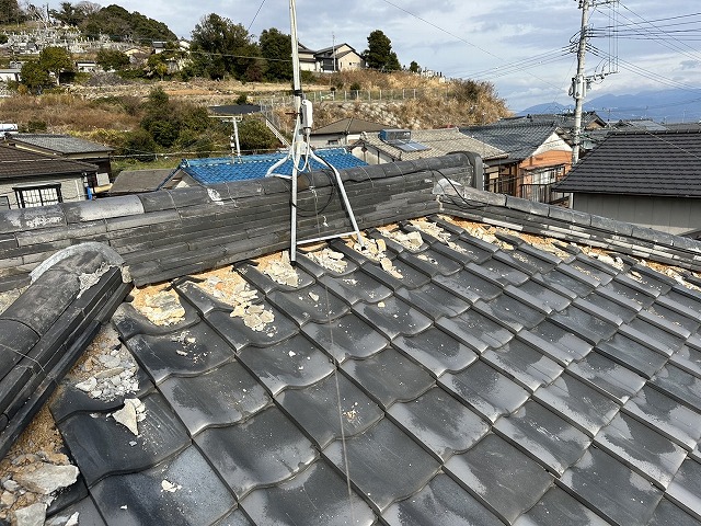 長崎市にて漆喰がポロポロ落ちてきている陶器瓦屋根の現場情報