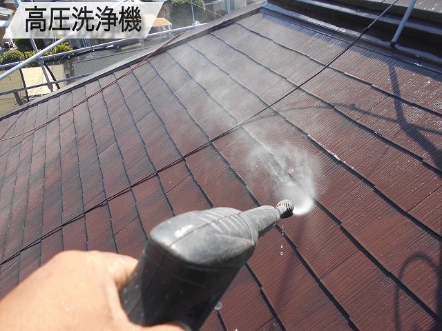 屋根を剥がさないといっても、重ねて屋根材をはって行く為、屋根を綺麗に洗っていきます!コケやカビを高圧洗浄で流していきますよ!高圧洗浄を行う理由は、新しい屋根材がしっかりと接着し、施工の耐久性や品質を確保するためですよ(^^)