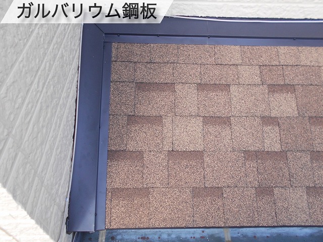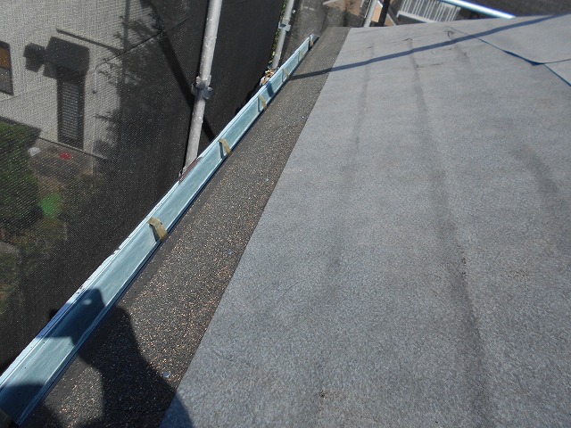 こちらお住いは雨押えがありました。雨押えには、ガルバリウム鋼板という錆びにくく、耐震性もある、屋根材を貼り付けていきます!