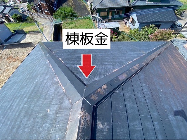 まずは棟板金の交換の様子をご紹介★既存の棟板金にはトタン板金が使用されており、サビが目立ってしまってる状態💦トタン板金はコストが低く軽量で扱いやすい反面、表面の亜鉛メッキが劣化・剥がれると錆びやすくなる素材。定期的な塗装やメンテナンスが重要になるばい‼️