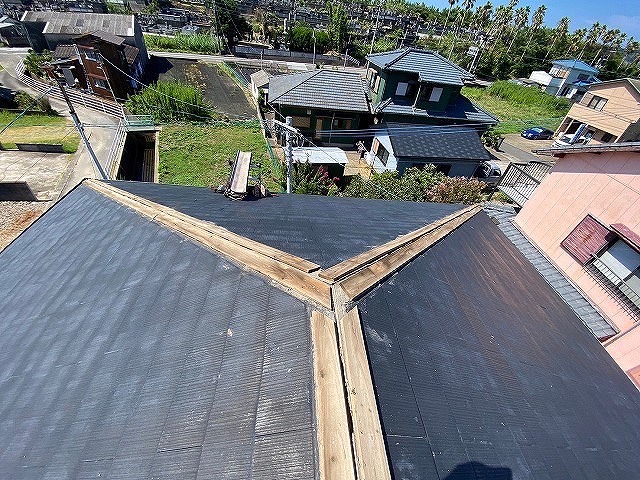 長崎市にて棟板金交換と屋根材部分補修をしていく現場情報