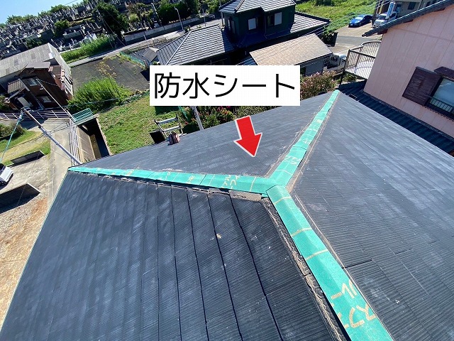 屋根材が重なる部分は隙間ができるっていったけど、その隙間から雨水が侵入せんごとしっかり防水シートば貼っていくばい‼️防水シートも20年〜30年で劣化してくるけんが、ここも見落とさんごとしっかり点検・メンテナンスばする事が大事ばい(-o-)/