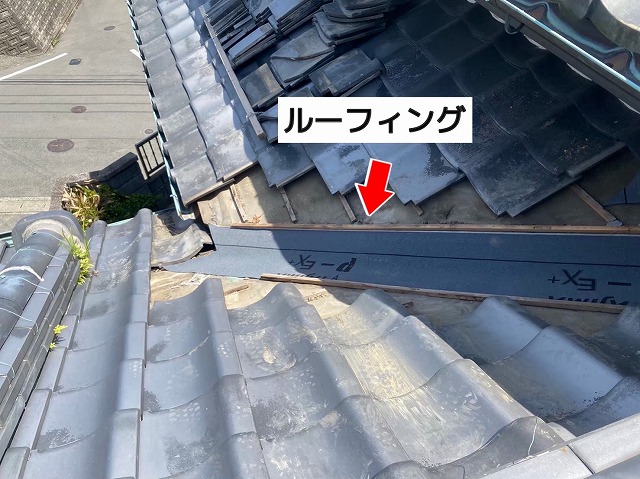 劣化した谷板金は交換するけん、取り外すていくばい!!そしたら、谷板金の下には防水シートば貼り付けていくっちゃんね‼️この防水シートが、屋根内部に雨水ば通さんごとしてくれる役割やっけん重要とよ😁
