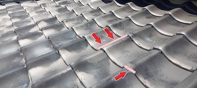 瓦の状態を点検したら、確かにズレを見つけたよ😭このままでは、瓦の落下などの危険性があるけん怖かよね😭💦落下もそうけど、瓦の中には雨水を防いでくれる防水シートが貼ってあるんだけど、ズレたままやと、雨水などが隙間から侵入して、防止シートの劣化に繋がるけん、屋根全体の危険性がでてくる😞そこで今回はオススメの工事【ラバーロック工法】を提案したよ😌