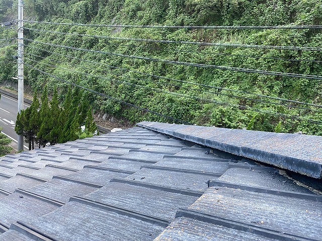 🏠お住い情報🏠・築32年・コンクリート瓦・2階建て木造住宅・屋根形 寄棟・棟瓦ズレあり・10年に1度塗装ありこちらのお住いは1度訪問業者にて棟のズレについて指摘を受けたことがあるらしかっ!ただその時は、お断りしたみたいけど、やっぱり気になって今回は長崎店へお問い合わせ頂いたよ😊それでは棟ズレが起きている箇所を見ていくばい‼️