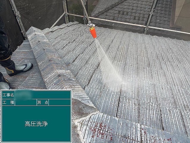 まず、塗装を施工する場合は屋根の表面についた汚れを高圧洗浄機で除去する必要があっとよ‼️この時に、コケやカビなど汚れも落としていくよ!高圧洗浄をすることで、新たな塗料の密着性を向上させ、屋根材の耐久性を高めることができっとよ〜🎶これをせんば、せっかく塗装したとに逆に寿命を縮ませてしまう恐れもあるけん大切とよ✨️
