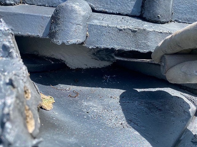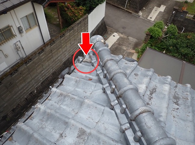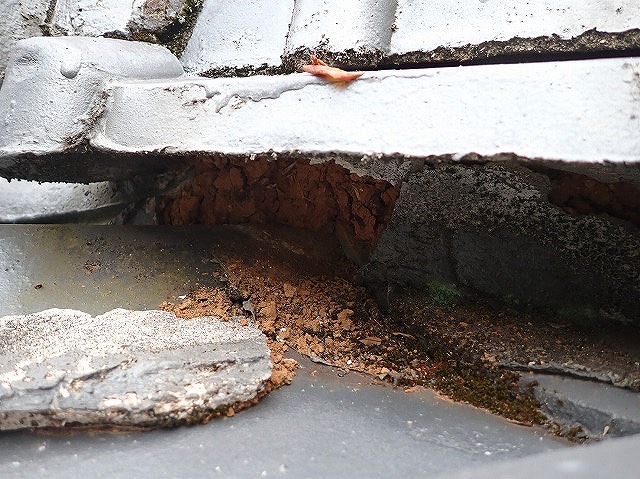 これがモルタルが剥がれて屋根に乗っかってしまっとる状態ばい😭