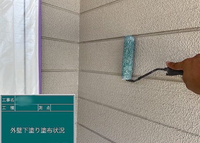 まずは、外壁塗装をする際は下地処理をするよ!!錆落としや錆止めなどをしっかり行った上で次の段階に進むよ〜!!下地処理が終わった後は【下塗り】をしていくばい★下塗りの役割として、塗料の密着性を向上させる為ばい!下塗りをしないのとしたのでは、全然塗料の密着性が異なってしまうけん、重要☝️
