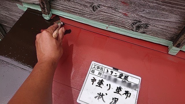 下地処理が完了したら中塗りばしていくばい★中塗りをする理由としては、塗膜の厚みば出してから耐久性を確保するため‼️そして、色ムラなども防ぐ役割があるけん大切な工程とよ💪✨そしてさっきした錆止め塗料が透けて見えんようにすることもポイント😊