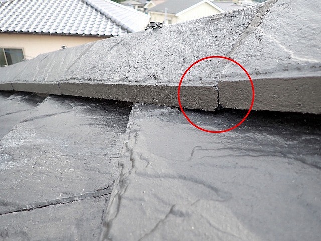 こちらは、土台の形成が上手くとれず、瓦がズレてしまっている状態です。こちらも放置していると、瓦の落下や様々屋根への負担がかかり、家全体の耐久性が低下してしまいます😭