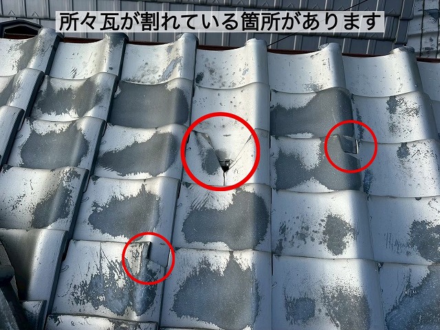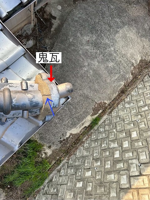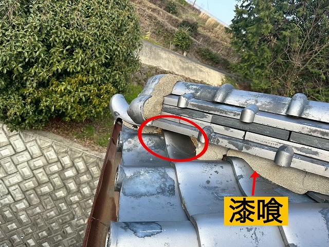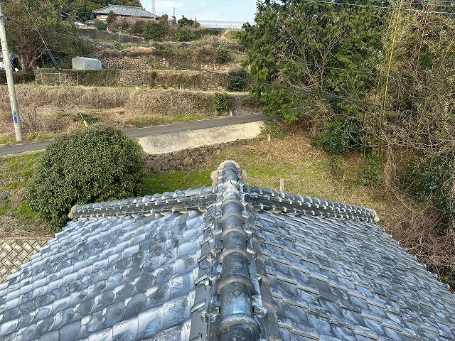 大村市で築35年のいぶし瓦屋根で棟漆喰剥がれがありました。【屋根無料点検事例】