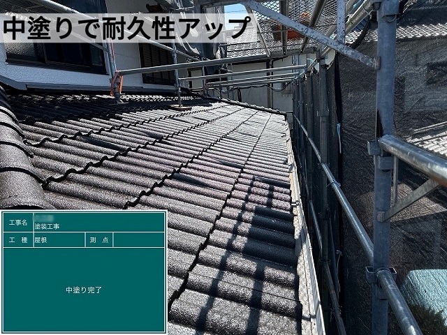 続いて 中塗り作業 🎨この工程から✅ 屋根にしっかり色が入り✅ 見た目が大きく変化中塗りを行い塗膜に厚みを持たせることで、✅ 耐久性アップ✅ 紫外線対策に繋がるばい☀️🏠