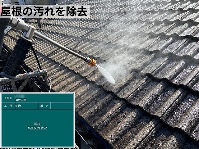 まず最初に行うのが 高圧洗浄作業 😊✅ コケ・カビ✅ 長年の汚れ✅ 劣化した古い塗膜を、強力な水圧でしっかり洗い流していくばい💪✨この工程が不十分だと…❌ 塗料の密着不良❌ 早期の塗膜剥がれの原因に⚠️屋根塗装の仕上がりを左右する とても大切な工程とよ〜‼️